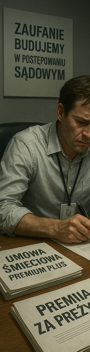 Umowa śmieciowa „Premium Plus” to forma zatrudnienia, w której pracownik podpisuje umowę zlecenie na 3 godziny tygodniowo, ale z klauzulą „do dyspozycji pracodawcy 24/7”. Do tego obowiązkowa firmowa koszulka i telefon służbowy, który trzeba odbierać zawsze – nawet podczas własnego pogrzebu. Żadnego urlopu, chorobowego ani gwarancji wypłaty. Wynagrodzenie? „Procent od sukcesu firmy”, który zwykle okazuje się zerowy.