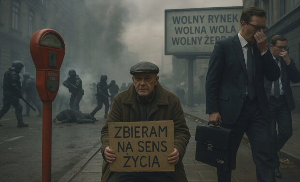 Polacy zaczęli śnić o czołgach w garażu i schronach przeciwatomowych w ogródku. Jeszcze niedawno marzeniem była sauna i grill na tarasie. Statystyki tylko potwierdzają ten senny koszmar: ilość wydanych zezwoleń na broń rośnie rok do roku o 12-13 procent. Armia puchnie. W 2023 mieliśmy 134 tysiące żołnierzy zawodowych, w 2024 już 144 tysiące, a pod bronią znajduje się obecnie około 205 tysięcy szabel. Równolegle eksplodował rynek cywilny. Polacy „rzucili się” na produkty obronne, sprzęt survivalowy i akcesoria do samoobrony. Sklepy outdoorowe odnotowały wzrosty sprzedaży 600-800 procent. Takie liczby mogłyby zawstydzić nawet twórców piramid finansowych. Najchętniej kupujemy śpiwory, latarki, noże, kamuflaże, mundury, gazy łzawiące i multitoole. Krótko mówiąc: naród, który jeszcze przed chwilą chodził w sandałach ze skarpetką, teraz szykuje się do wojny totalnej, uzbrojony w scyzoryk i gaz pieprzowy. Kursy survivalowe i bushcraftowe wyprzedają się szybciej niż wejściówki na koncert […]